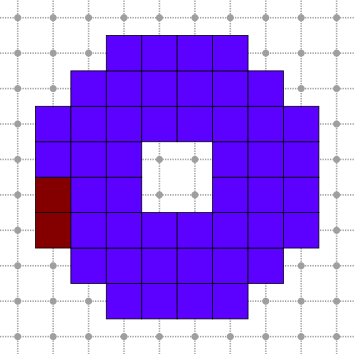 In this example, we create a 2D ring structure and we solve a regularized Poisson equation on this structure. Snippets are taken from exampleDiscreteExteriorCalculusSolve.cpp. First the structure is created from a digital set.
