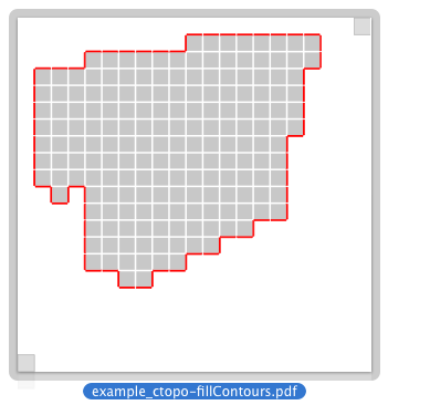 The example ctopo-fillContours.cpp illustrates a basic filling with a shape containing a hole. The main steps to fill a contour represented by a FreemanChain are the following: