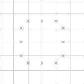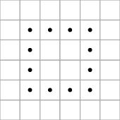The different ranges for a grid curve whose chain code is 0001112223333 are depicted below.