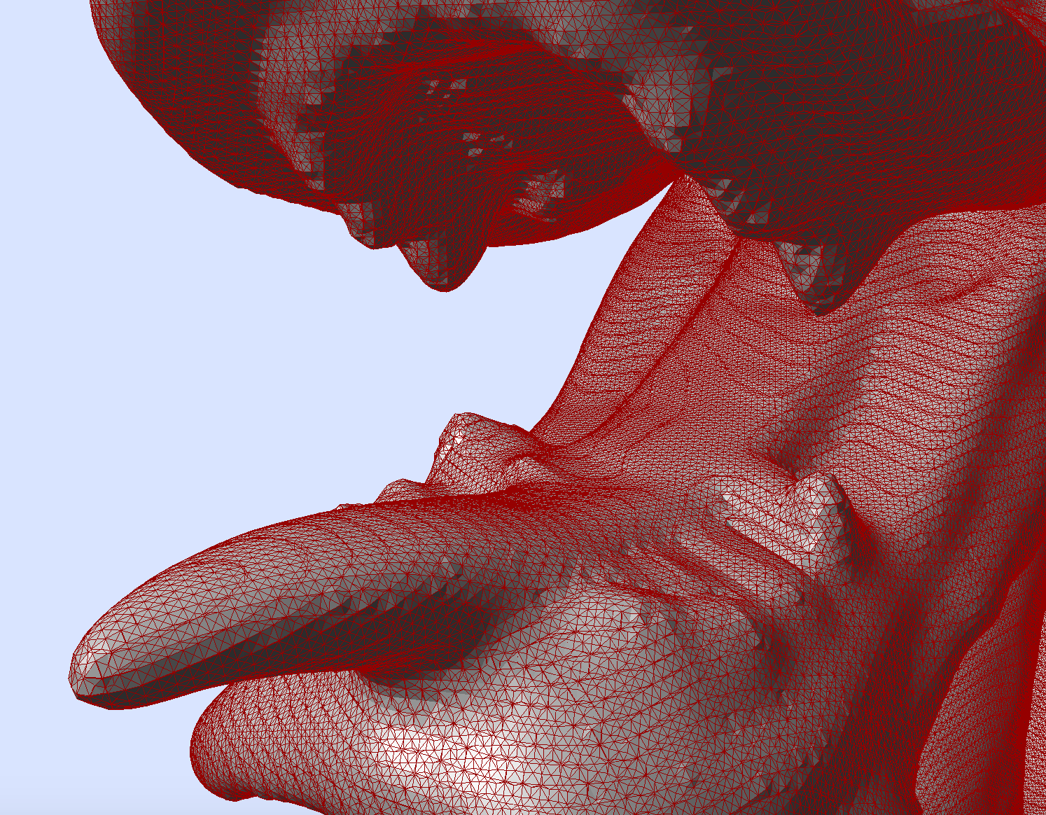 A triangulated surface is parameterized by the type that represents the coordinates of each vertex. Then you simply add vertices by specifying their coordinates, and triangles by giving the indices of the three vertices counterclockwise. Once this is done, you must call TriangulatedSurface::build to finish the construction. The following code creates a tetrahedron.