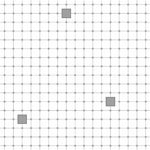 We now consider an object in a [0,0]x[16,16] domain with three background points. To construct such point predicate, we first define a set containing the three points, then we consider the point predicate defined on this set (which returns true at a point if the point is inside the set) and we consider the negation of such predicate in order to return true for object points. Here you have the construction: