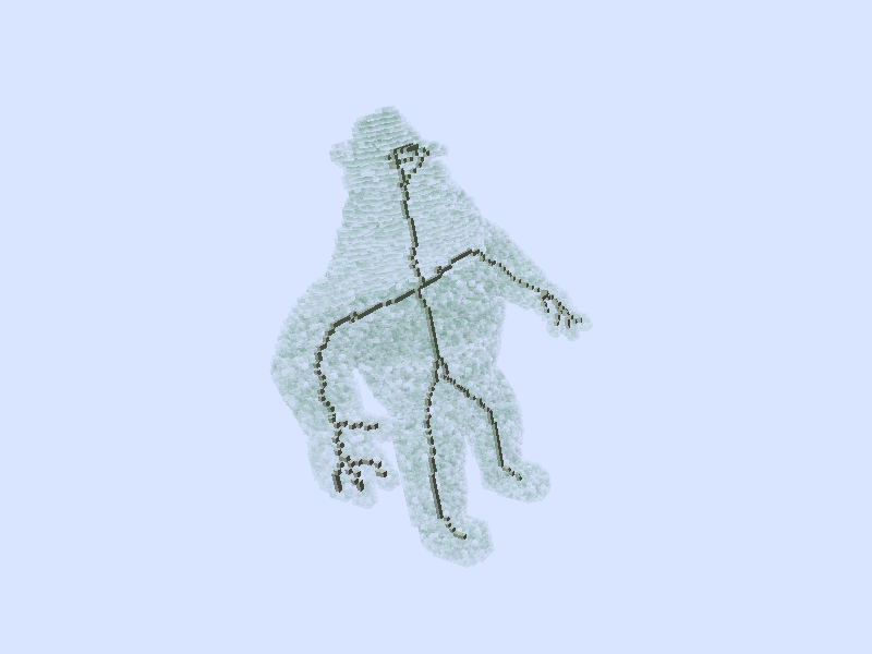DGtalTools provide a script criticalKernelsThinning3D.cpp ready to use for 3D inputs. Some results: