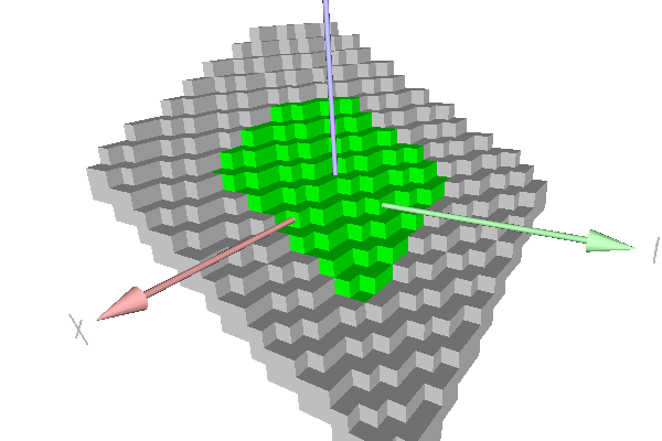This example shows the recognition of a simple standard digital plane with the COBA algorithm (class DGtal::COBAGenericStandardPlaneComputer). Green points belong to the naive plane. Grey points show farther points that also belong to the strip.