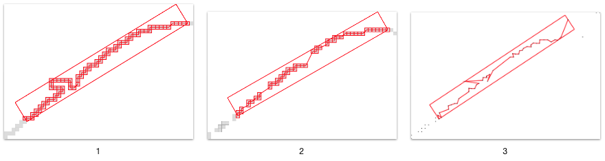 The Digital Straight Segment primitive (described here: Digital straight lines and segments) is commonly used to extract geometric information from digital contours. It is exploited in various estimators as for instance in tangent [75] or curvature estimation [67] . However, this primitive is not efficient to directly process real contours with the potential presence of noise. To overcome this limitation the alpha-thick segments (called initially Blurred Segments) were first introduced by Debled-Rennesson et al [48] which handle noise or contour irregularities.