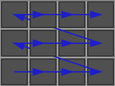 Getting the next cell in this space such that if one starts from the first cell (with same topology) of the space and iterates this process, then all cells of the space with same topology were visited. This may be done with KhalimskySpaceND::uNext, KhalimskySpaceND::sNext. Below is a code snippet that does a scanning of all cells of same topology between first and last cell.