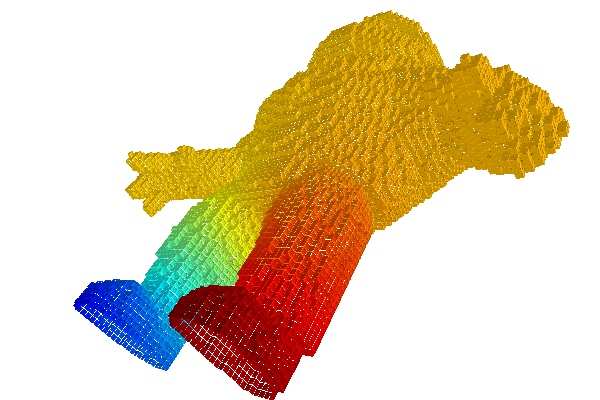 Now the problem is fully defined and there one thing left to do: solving it. The resolution is done by DiscreteExteriorCalculusSolver. This class takes the actual linear solver used as the second template parameter. Any class that validates the CLinearAlgebraSolver concept can be wrapped by DiscreteExteriorCalculusSolver. If DGtal was compiled with eigen support enabled as described in DEC linear solver, some solvers will be available in the EigenLinearAlgebraBackend. Here, we will use the EigenLinearAlgebraBackend::SolverSparseQR solver. Once created the solver is given the operator using DiscreteExteriorCalculusSolver.compute. The input dirac 0-form is passed to DiscreteExteriorCalculusSolver.solve, which return the solution of the problem.