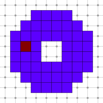 In this example, we create a 2D ring structure and we solve a regularized Poisson equation on this structure. Snippets are taken from exampleDiscreteExteriorCalculusSolve.cpp. First the structure is created from a digital set.