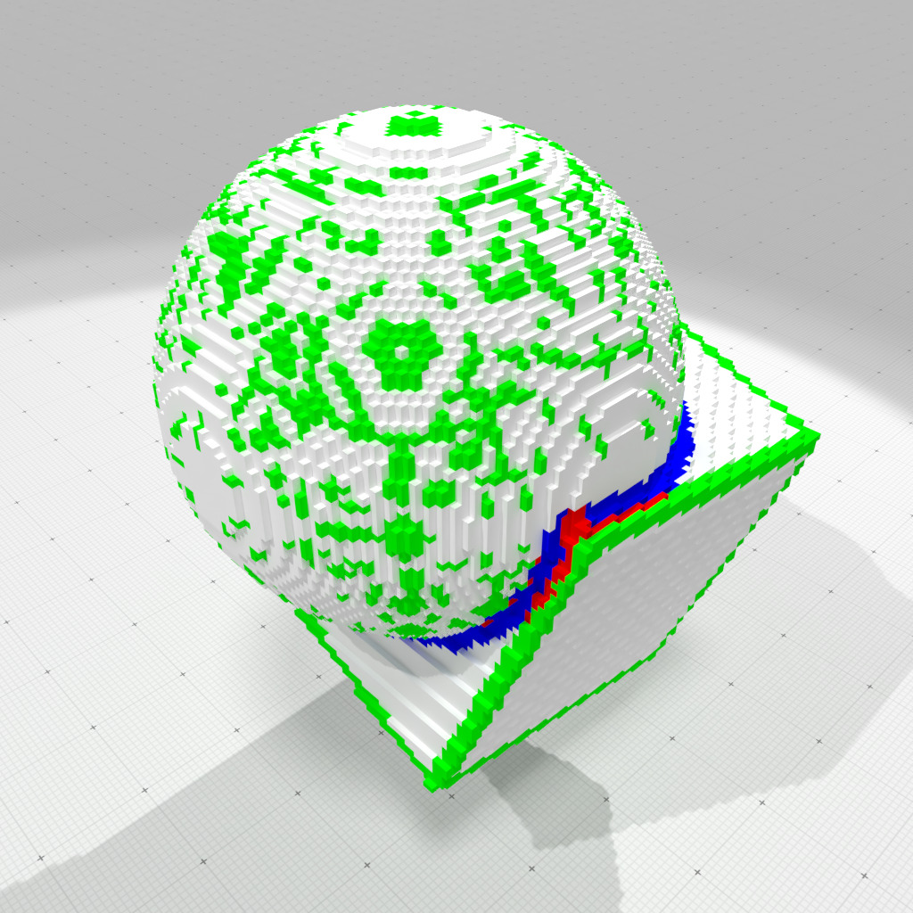 Exact geodesic distances on unit sphere digitized at h=0.0625 (max d=3.02389) |