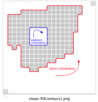 - The that the resulting Cell orientation is defined by convention such that a contour defined in the direct orientation will generate the fill of the interior of the shape (with the uComputeInterior method) while the indirect orientation should be used to define a hole (see example below).