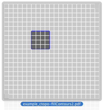 The example ctopo-fillContours.cpp illustrates a basic filling with a shape containing a hole. The main steps to fill a contour represented by a FreemanChain are the following: