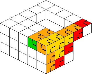 The following snippet shows the interior surfel adjacency (i.e. (6,18)-surfaces).
