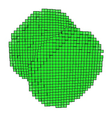 where \(\mathcal{D}\) is a standard rounding function (another interpolation method are for this moment not implemented in DGtal). Unfortunately discrete rigid transformations are in general nighter isometries nor bijective. From above difficulties we can consider two models of discrete rigid transformations: forward - Lagrangian and backward - Eulerian. First of them consists of computing \(U\) and second \(T\) but from the perspective of transformed space therefore all its points have defined value, which is not always true for the forward model.