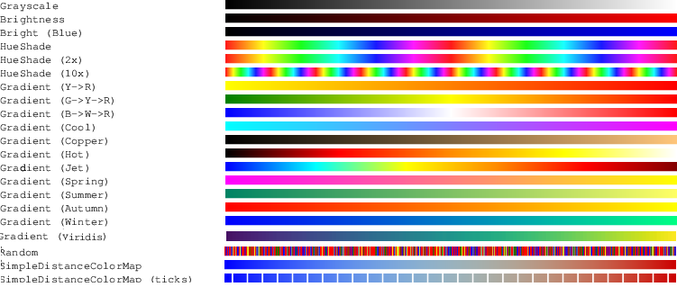 Before going into details, let us first present an interesting tool for image visualisation or image export: predefined colormaps to convert scalars or to (red,green,blue) triplets.