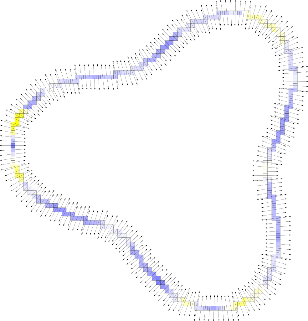 - geometry estimation: Given a digital surface approximating some surface, the VCM can estimate robustly the oriented normal vector and the principal directions of the underlying surface.