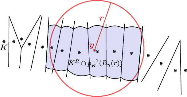 The Voronoi covariance measure (VCM) has been introduced in [95] for normals and curvature estimations. Let K be a compact subset of \(\mathbb{R}^3\) and \(d_K\) the distance function to K, i.e. the map \( d_K(x) := \min_{p\in K} \|p-x\| \). A point p where the previous minimum is reached is called a projection of x on K. Almost every point admits a single projection on K, thus defining a map \( p_K: \mathbb{R}^3 \to K \) almost everywhere. The R-offset of K is the R-sublevel set of \( d_K\), i.e. the set \(K^R:=d_K^{-1}(]-\infty, R[)\). The VCM maps any integrable function \(\chi:\mathbb{R}^3 \to \mathbb{R}^+\) to the matrix
