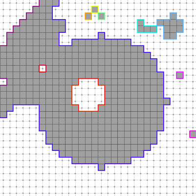 Afterwards the set of all 4-connected contours can be extracted by using the function extractAllPointContours4C from DGtal::Surfaces: